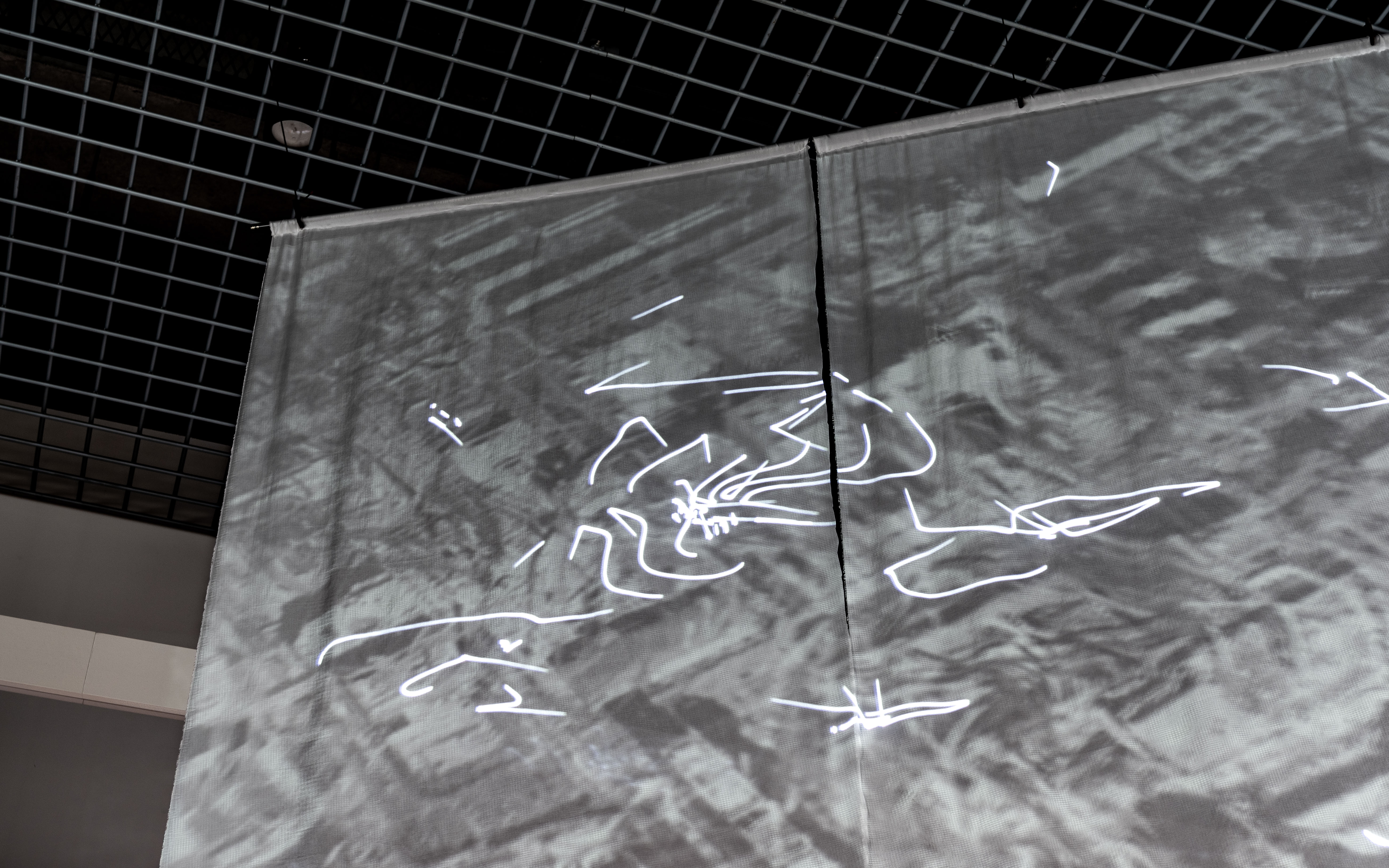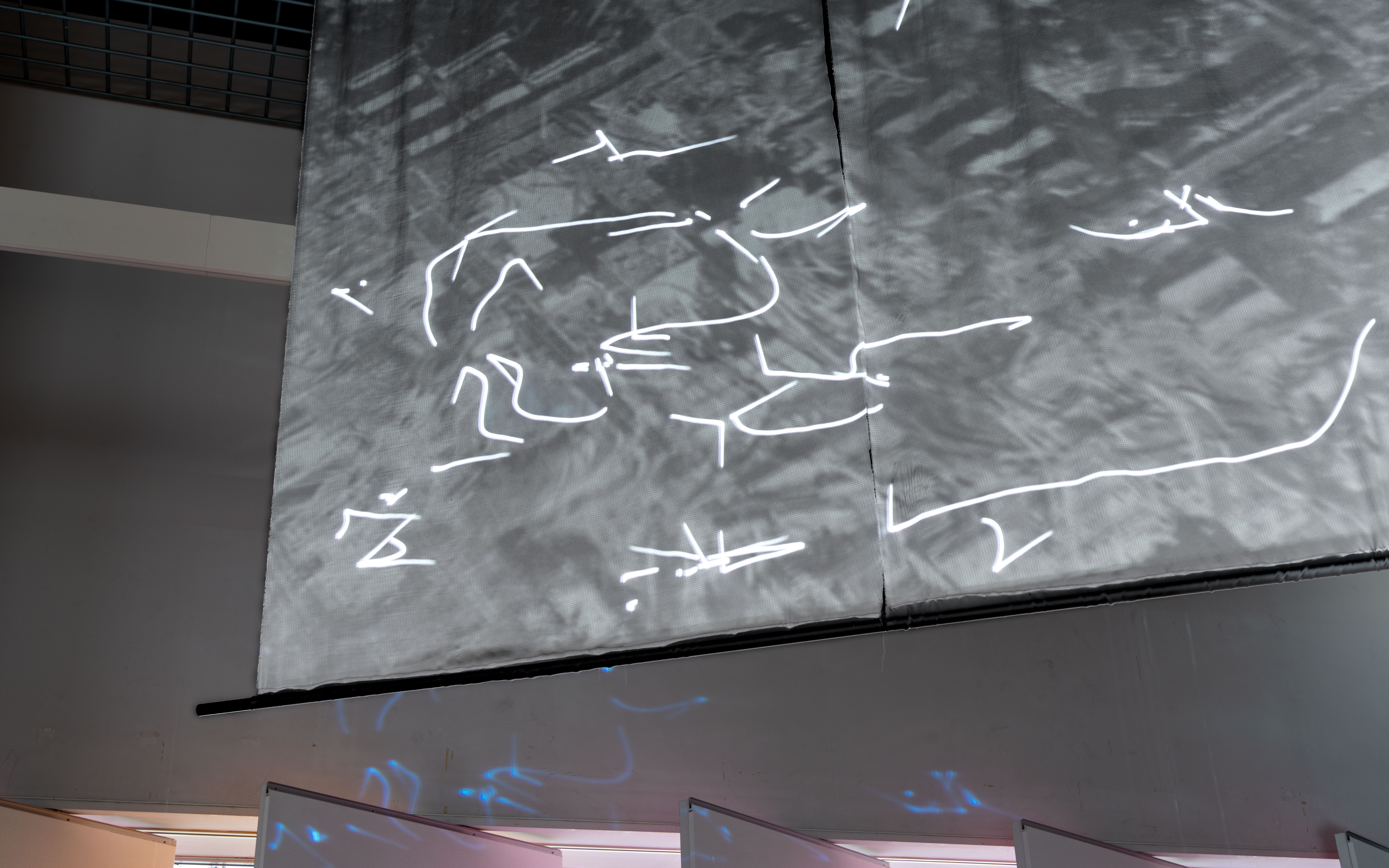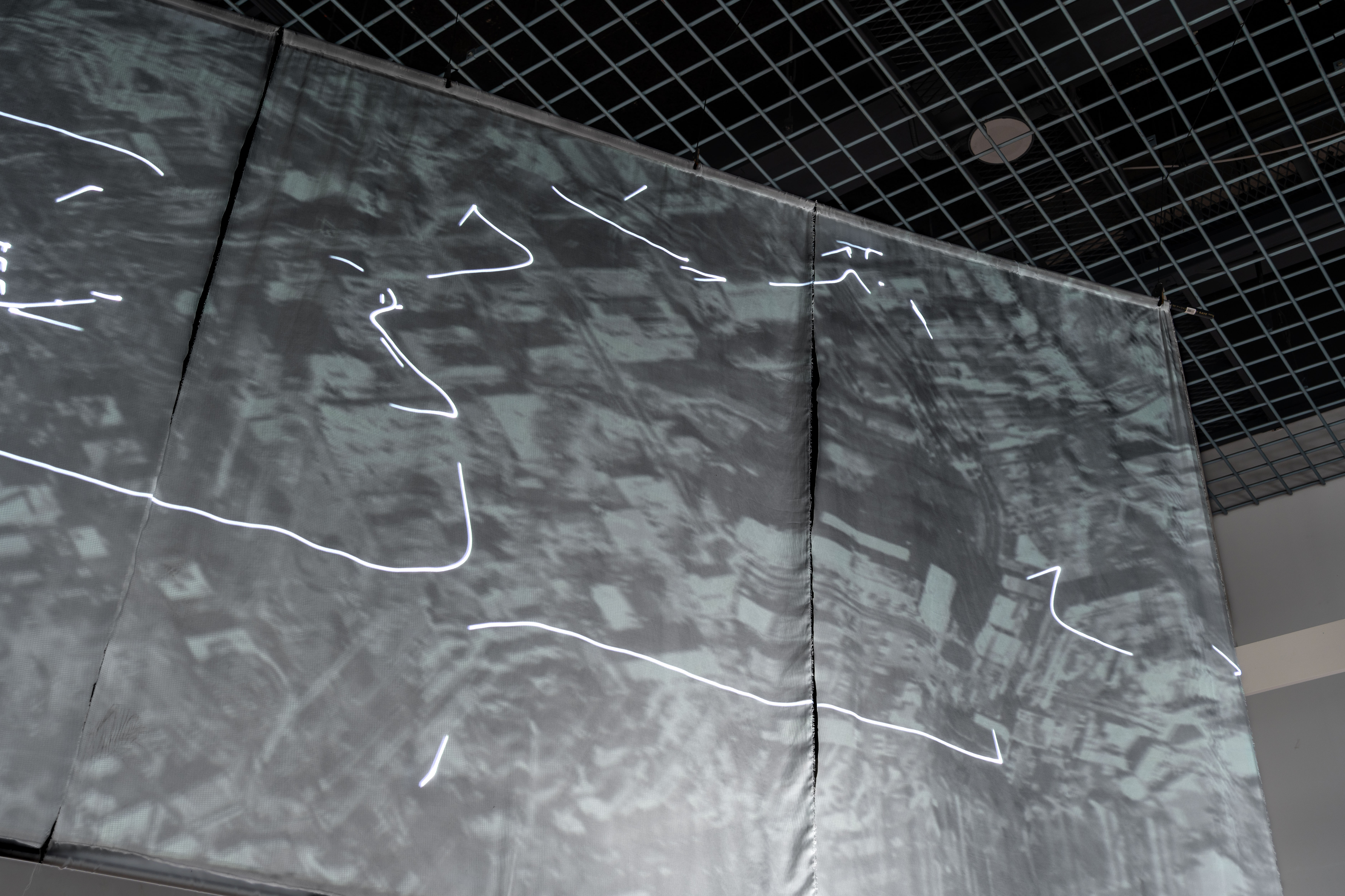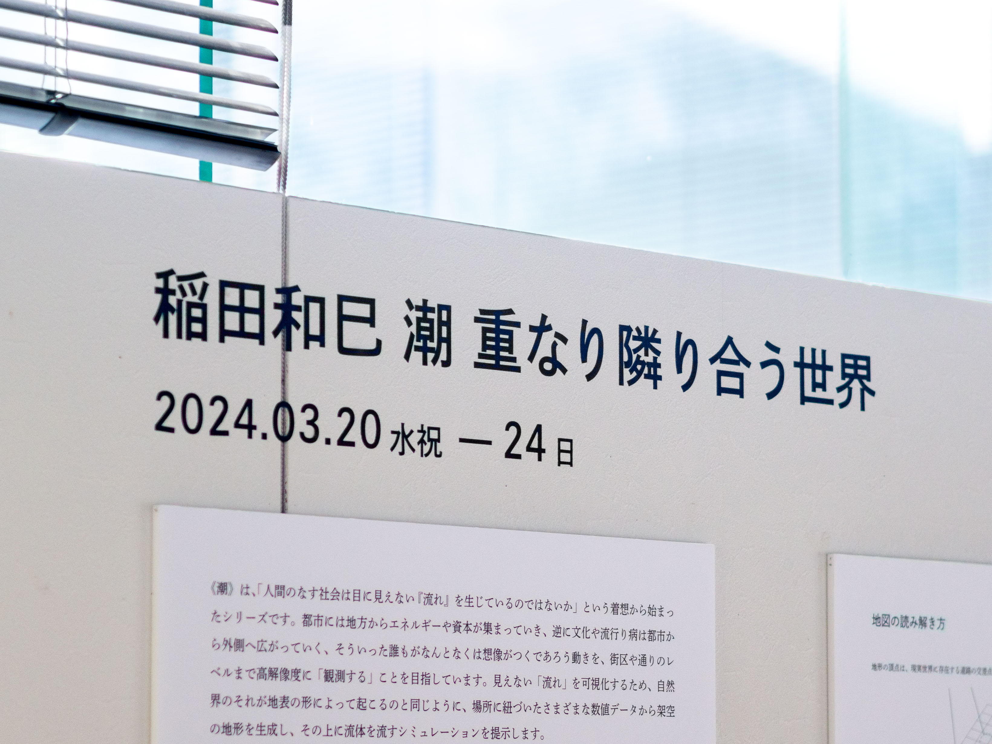 《潮》は、地理空間に紐づくデータを仮想の地形に読み替え、場に横たわる不可視な流れを示すことで、そこに広がる社会の特性を調査する作品シリーズです。本展では、研究学園都市以前の農村や近年開発されるベッドタウンなどさまざまな相を見せるつくばの街を、大規模言語モデルを用いたAIに「歩いて」もらう試みについて、公園のレストハウスを会場にした映像インスタレーションで展示します。