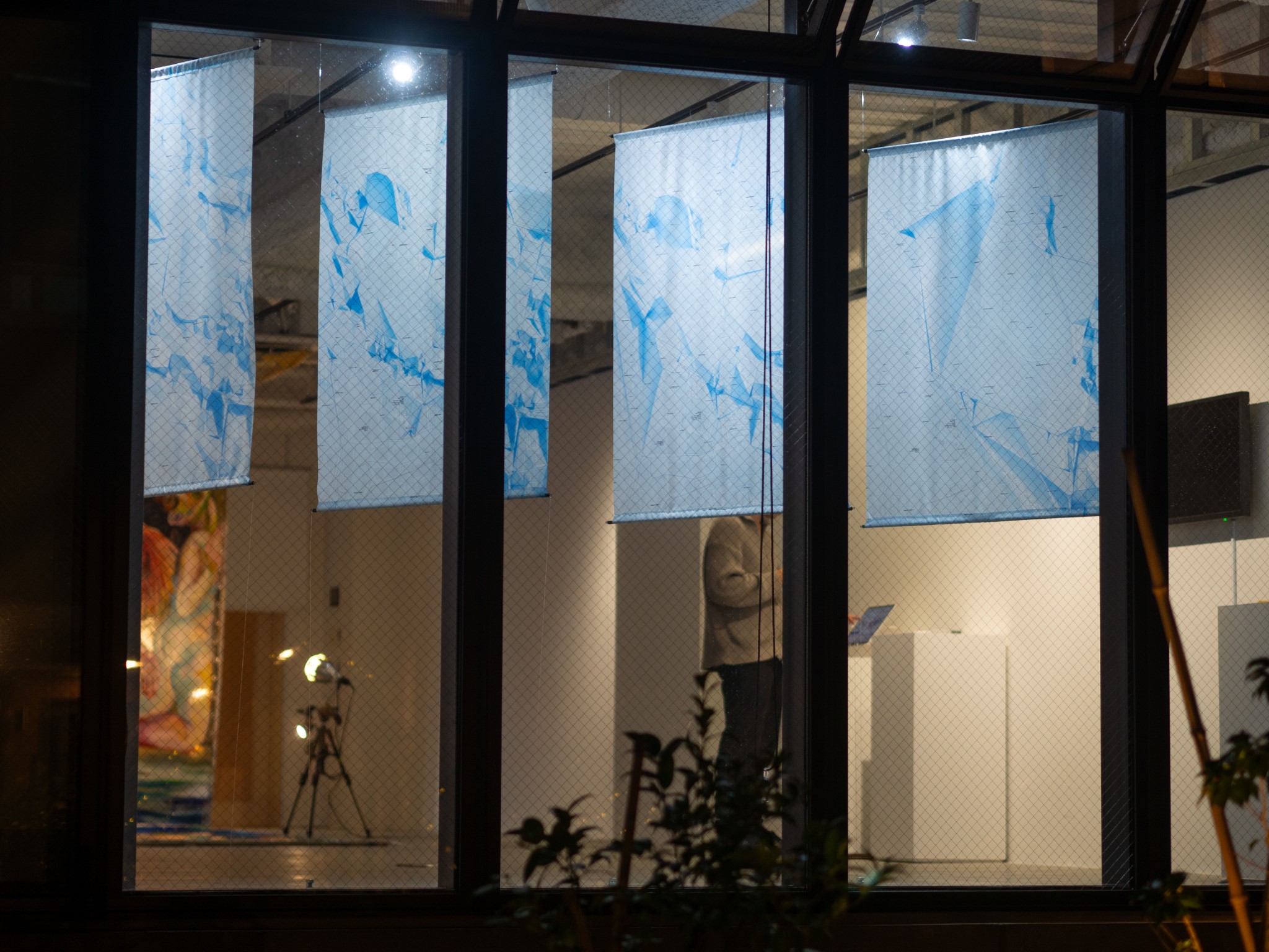 本展は、偶然に散らばる「ASTERISM」(星群)をささやかな表題として、テキスタイル・メディアアート・作曲・油絵・映画・サイエンスといった異なるジャンルで活動する6名のグループ展です。