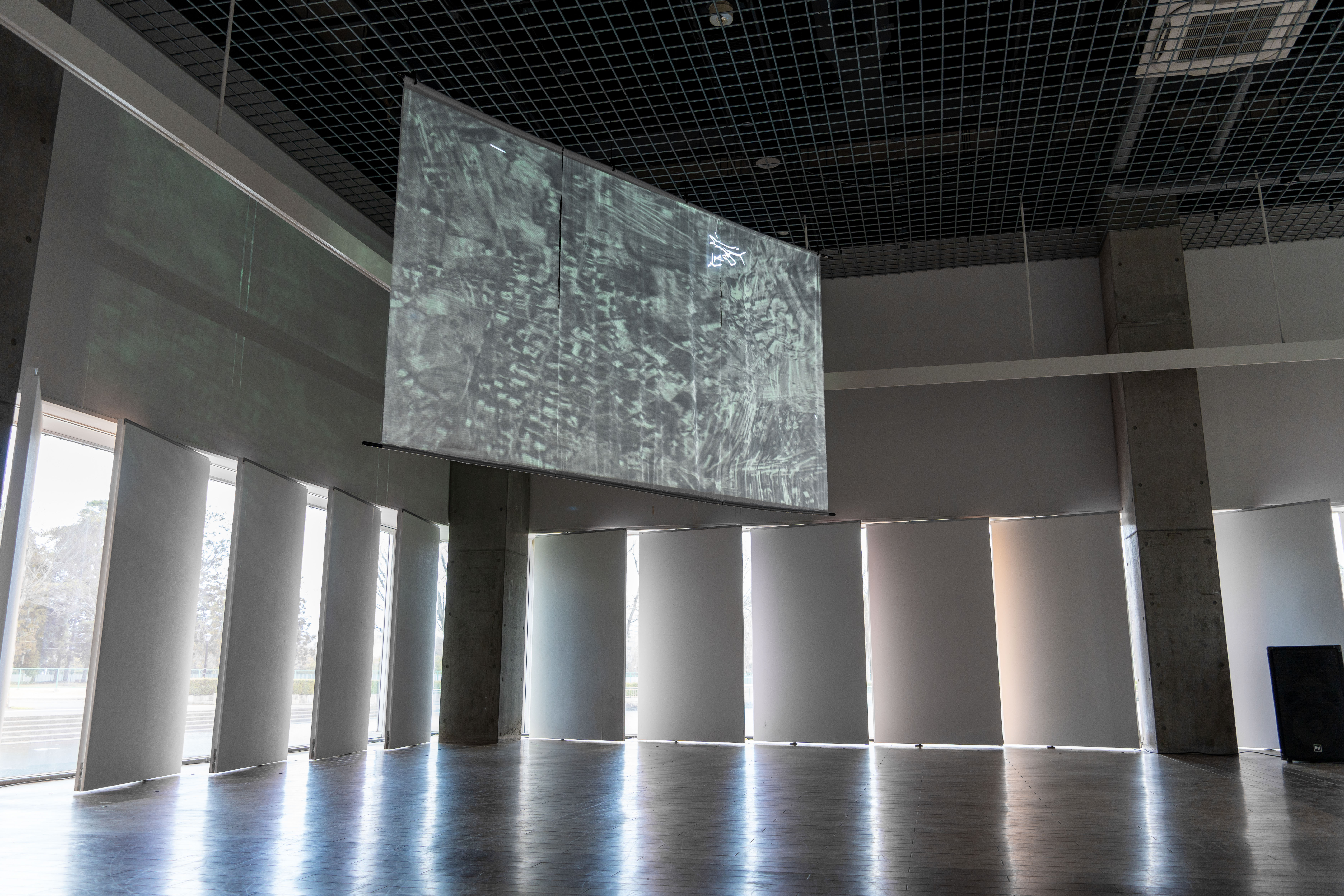 《潮》は、地理空間に紐づくデータを仮想の地形に読み替え、場に横たわる不可視な流れを示すことで、そこに広がる社会の特性を調査する作品シリーズです。本展では、研究学園都市以前の農村や近年開発されるベッドタウンなどさまざまな相を見せるつくばの街を、大規模言語モデルを用いたAIに「歩いて」もらう試みについて、公園のレストハウスを会場にした映像インスタレーションで展示します。