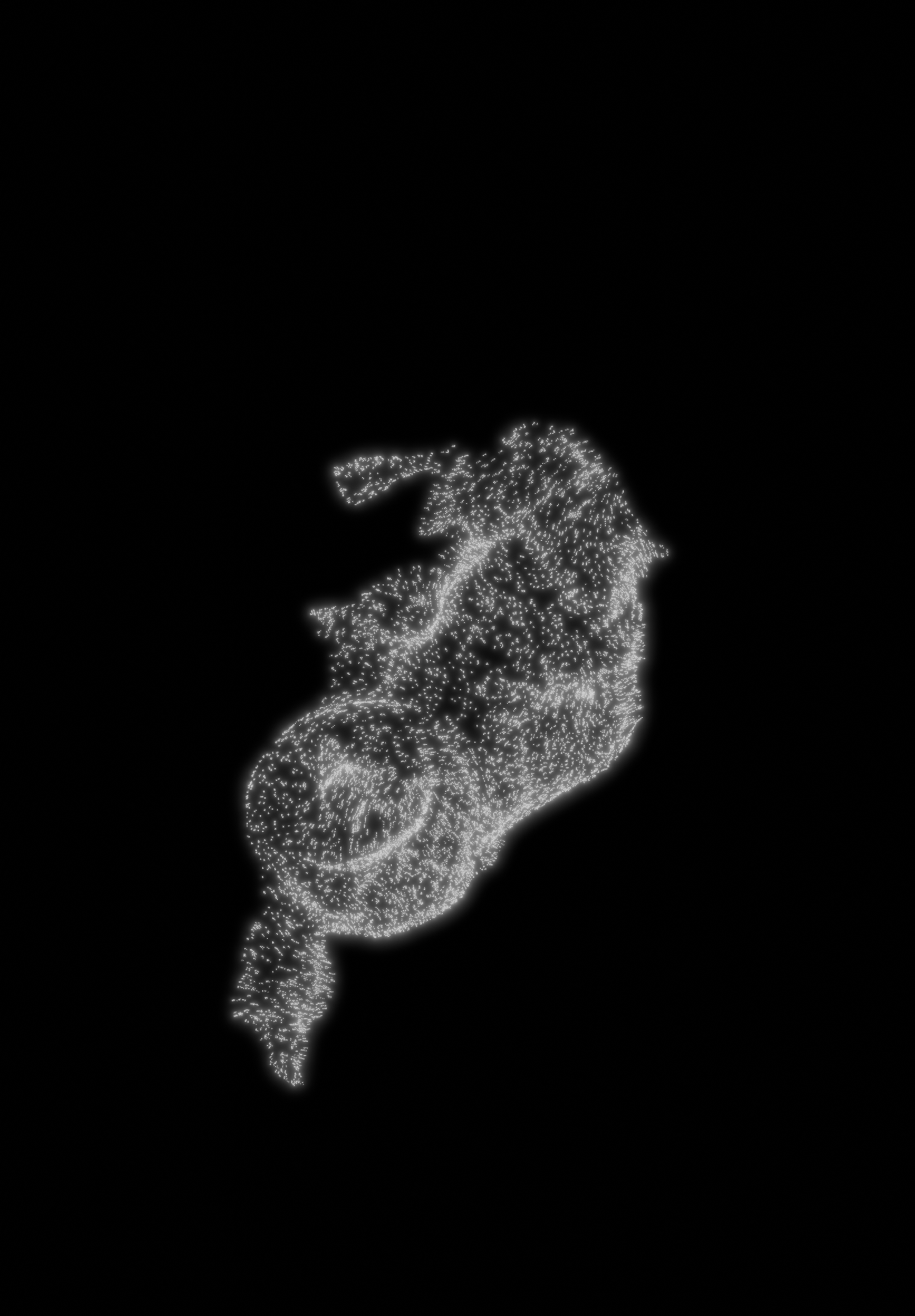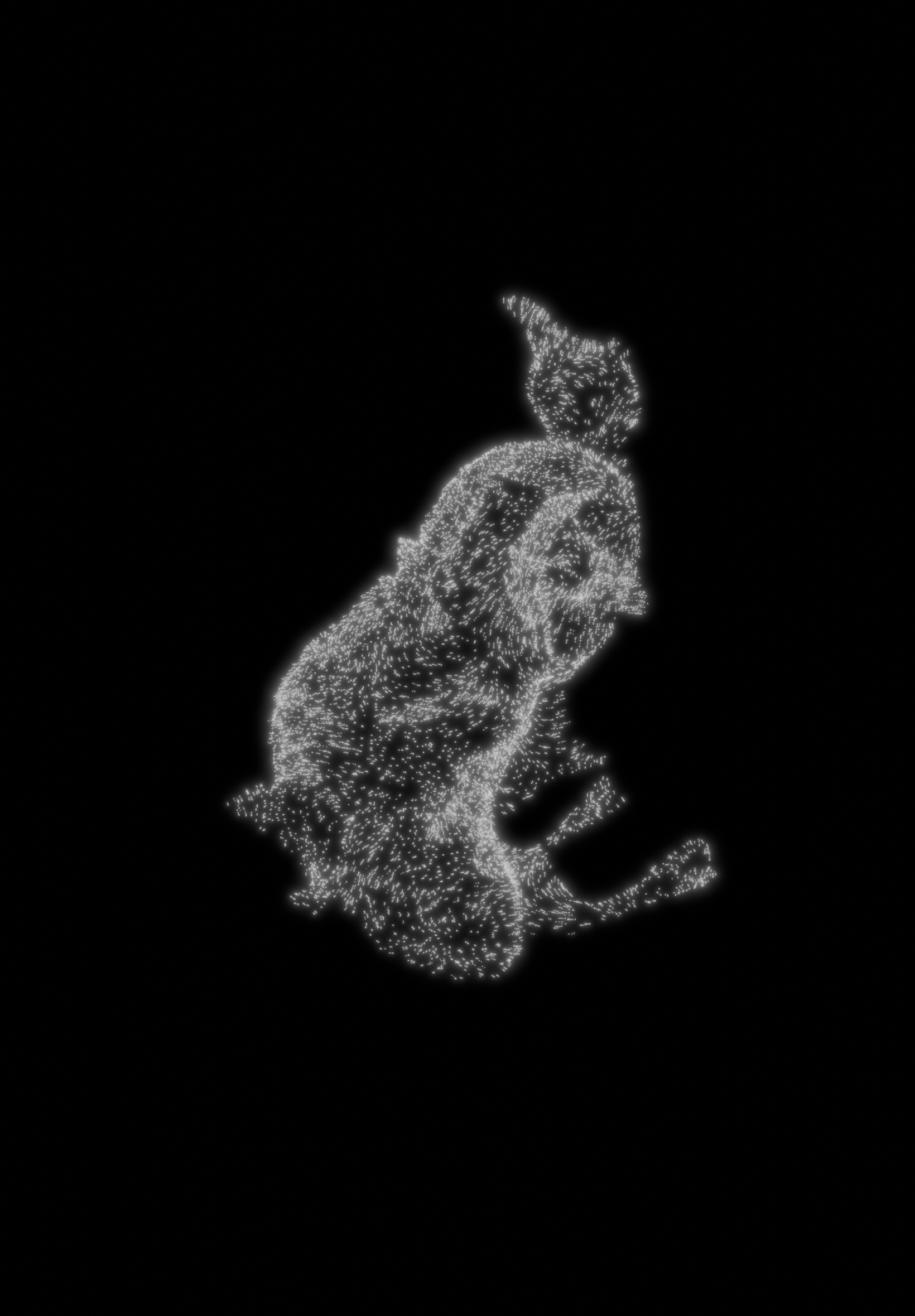 造形作家・上根拓馬の立体作品を、フォトグラメトリでスキャンしたCG映像作品。工業製品のような雰囲気を纏う上根の造形を、手作業の形状からデジタル処理されたデータへ、また質量を持った素材からディスプレイの光へと遷移させる過程を通じ、造形の細部に目を向け、表現への取り組み方の差異を体験することを試みた。