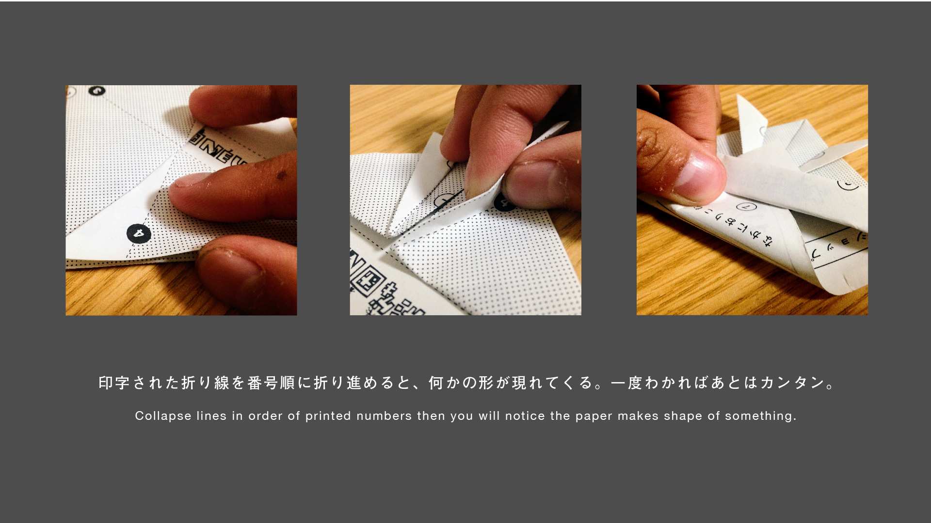 折り紙の要領で遊ぶことのできるチラシは、受け取ったその場で「ものを作る楽しみ」を伝えることを狙った。