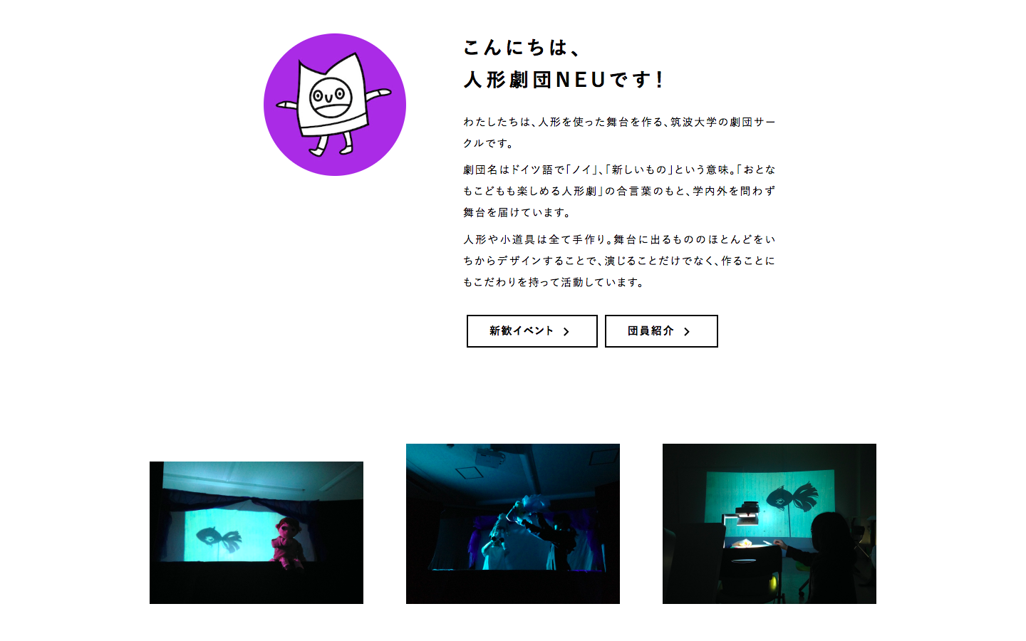 筑波大学人形劇団NEUで2018年度新歓プロモーションを担当。主にWebサイトおよびSNSを中心とした展開をおこなった。